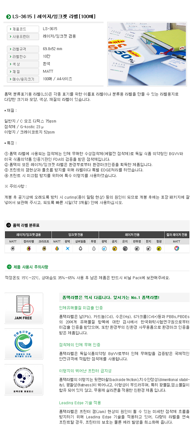 폼텍 분류표기용라벨 LS-3615 (10칸 100매)