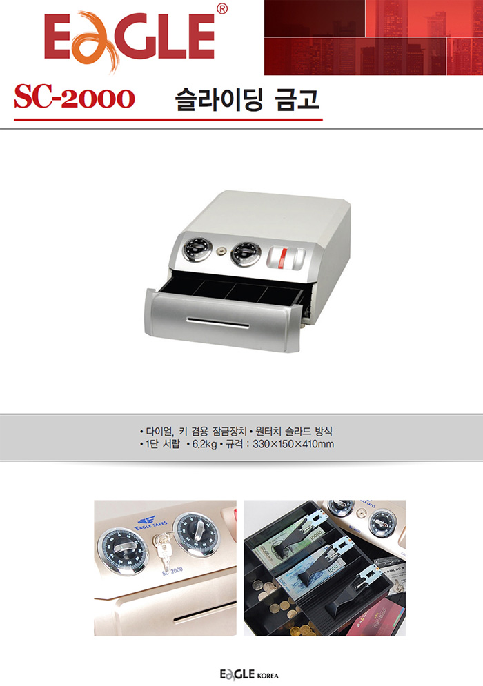 330X410X150MM, 5KG, 다이얼,키겸용잠금장치,1단서랍, 원터치슬라이딩방식