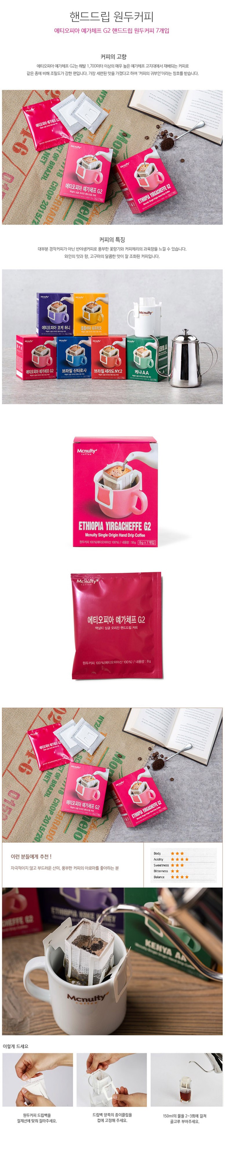 맥널티 에티오피아 예가체프G2 핸드드립커피(8g,7개입)
