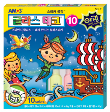* 상품명 : 글라스데코10번(10색) * 안전인증번호 : B361H050-9002 * 원산지 : 한국 * 규격(사이즈) : 255x260(mm) * 색상 : * 재질 : PVP * 단위 : 1SET * 수용량(매수) : 22ml * 9개 + 40ml * 1개 + 썬데코모빌 2개 + 8g접착딱풀 * 상세설명 : 어린이에게 창의력 개발, 컬러 감각을 키워주며 다양한 장식용 데코 활용