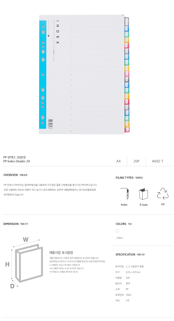 문화인덱스(PP/20분류A4) A692-7