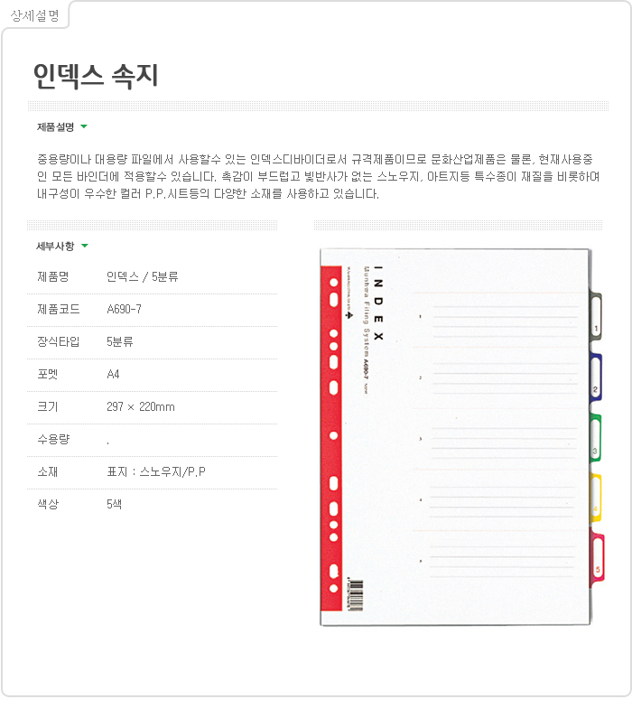 문화인덱스(PP/5분류/A4) A690-7