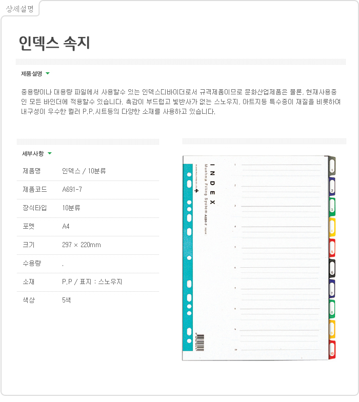 문화인덱스(PP/10분류/A4) A691-7