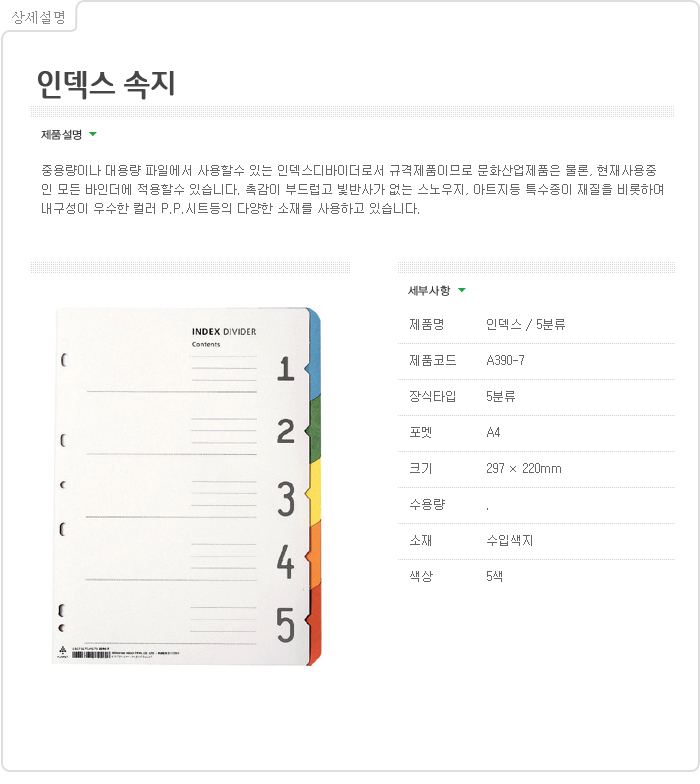 문화인덱스(수입지/5분류/A4) A390-7