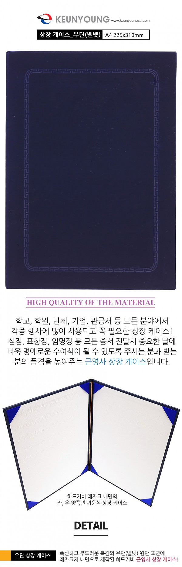 • 규격A4.색상:우단청색.우단재질의 고급스러움 가미