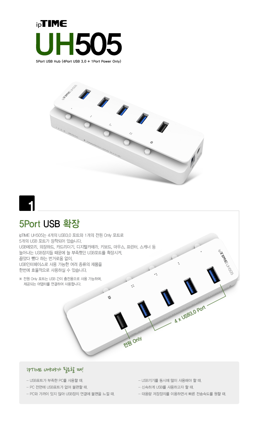 [EFM] ipTIME UH505 (USB허브/5포트) [화이트] ▶ UH305 후속모델 ◀