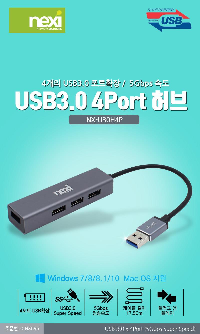 이지넷 NEXT-414U3 (USB허브/4포트) [블랙] ▶ [무전원/USB3.0] ◀