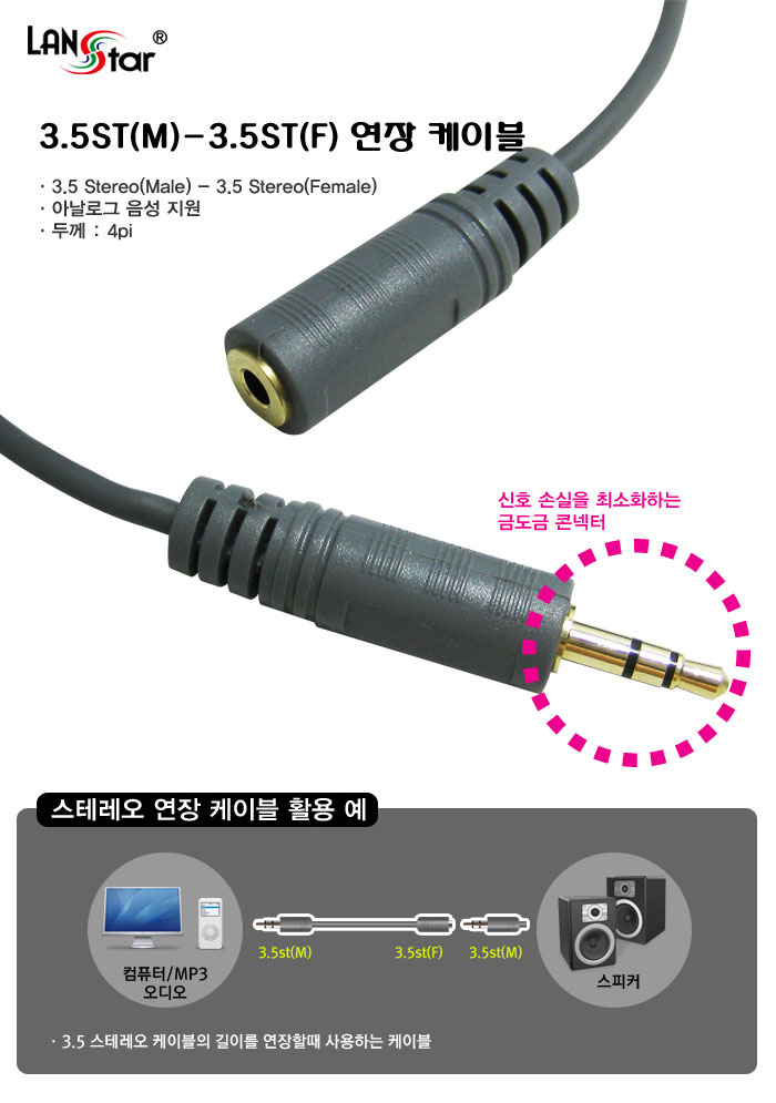 • 규격1m.케이블 양쪽이 한쪽은 숫놈/다른 한쪽은 암놈타입.스테레오케이블 연장시 사용