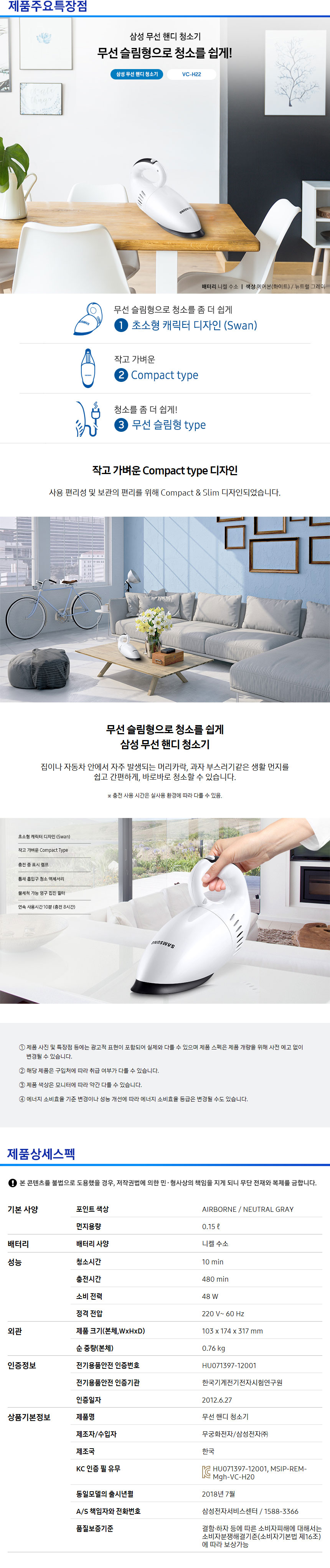 [삼성전자] 핸디형 청소기 VC-H22