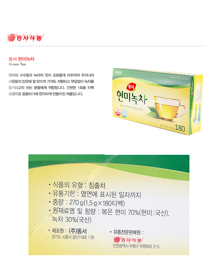 동서 현미녹차180티백