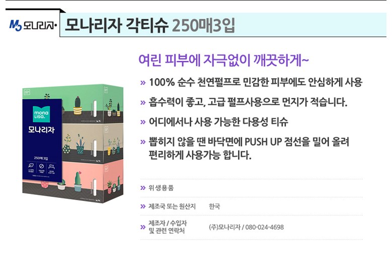 모나리자 사각티슈(3개입)