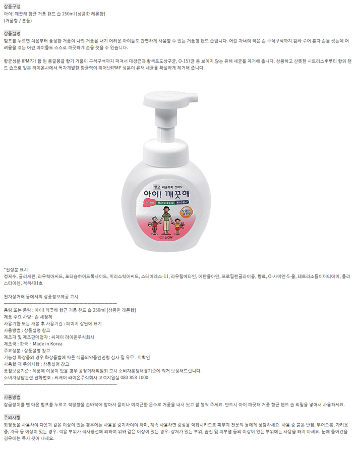 아이깨끗해 핸드워시(용기/레몬향)
