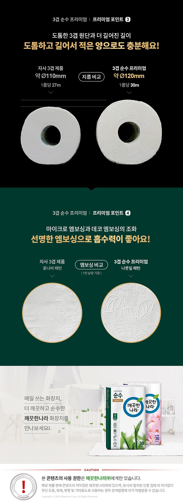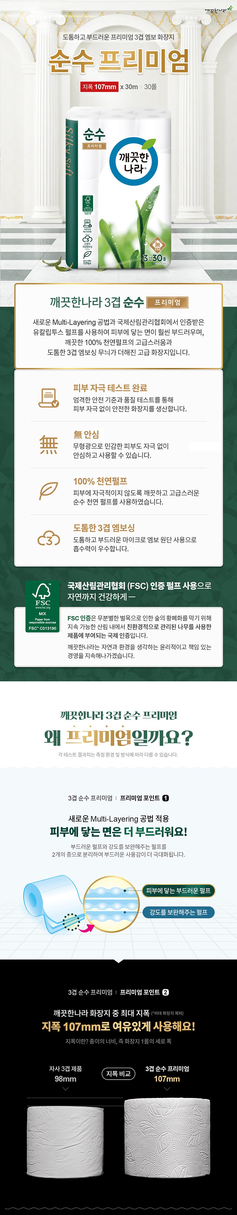 깨끗한나라 30롤 3겹 롤 휴지 /30m 데코 천연펄프