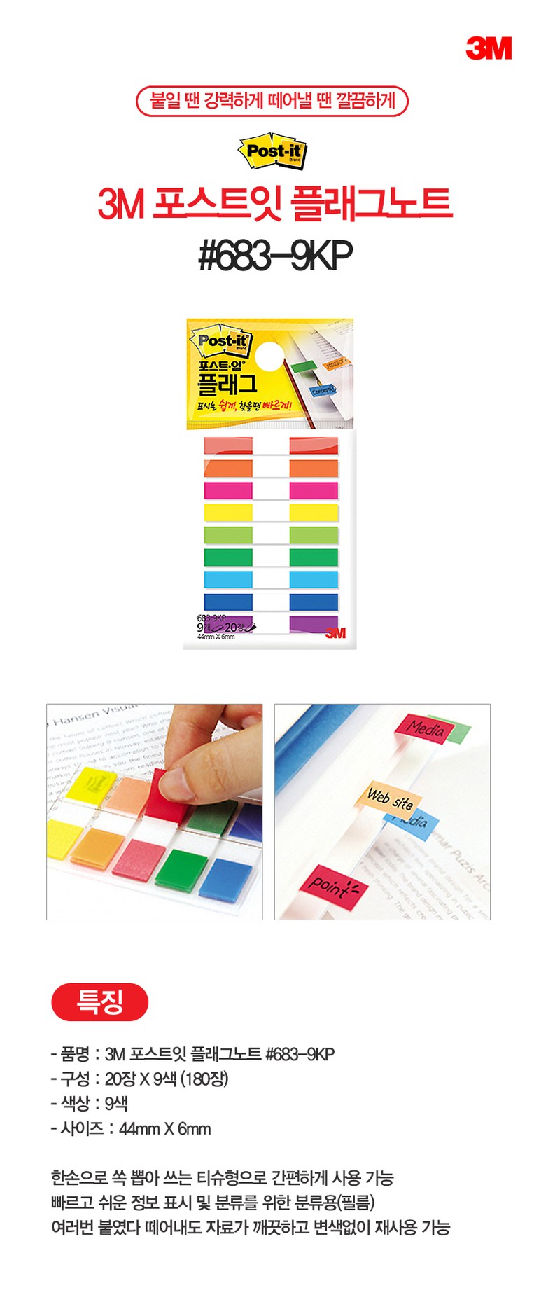 제품 구성 : 683-9KP(20장*9색=180장) 10팩