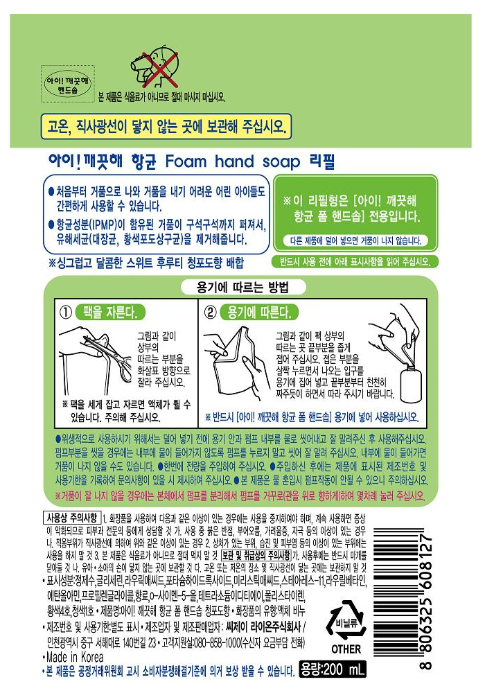 아이깨끗해 핸드워시리필(200ml/청포도향)