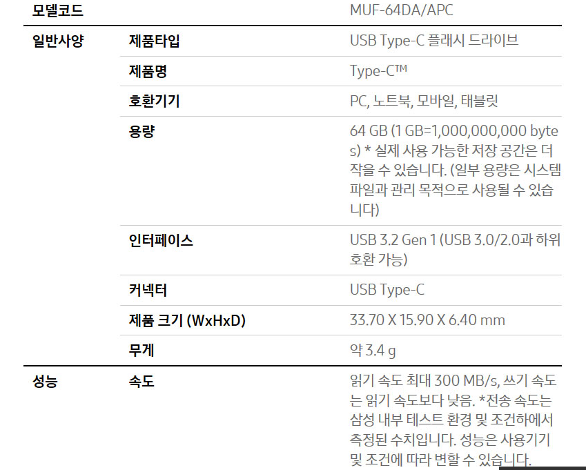 [삼성전자] USB, 플래시 드라이브 TYPE-C MUF-64DA/APC [64GB]