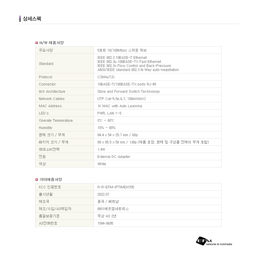 • 규격5Port,100Mbps
