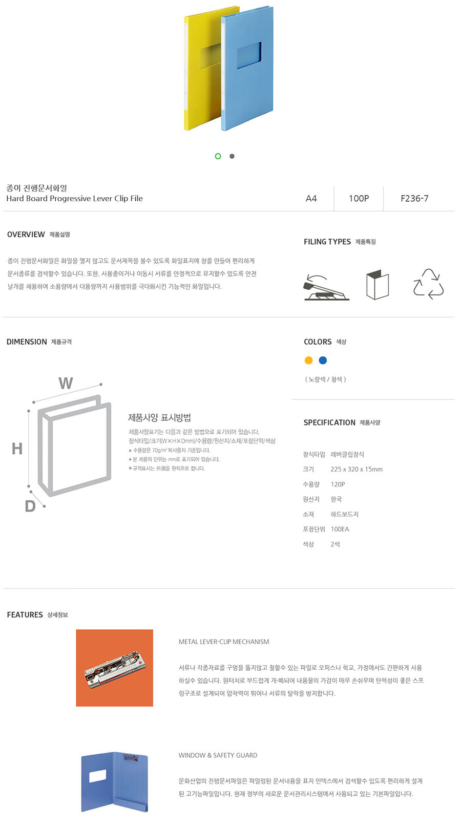 문서 훼손없이 보관할 수 있는 레버장식(상철)