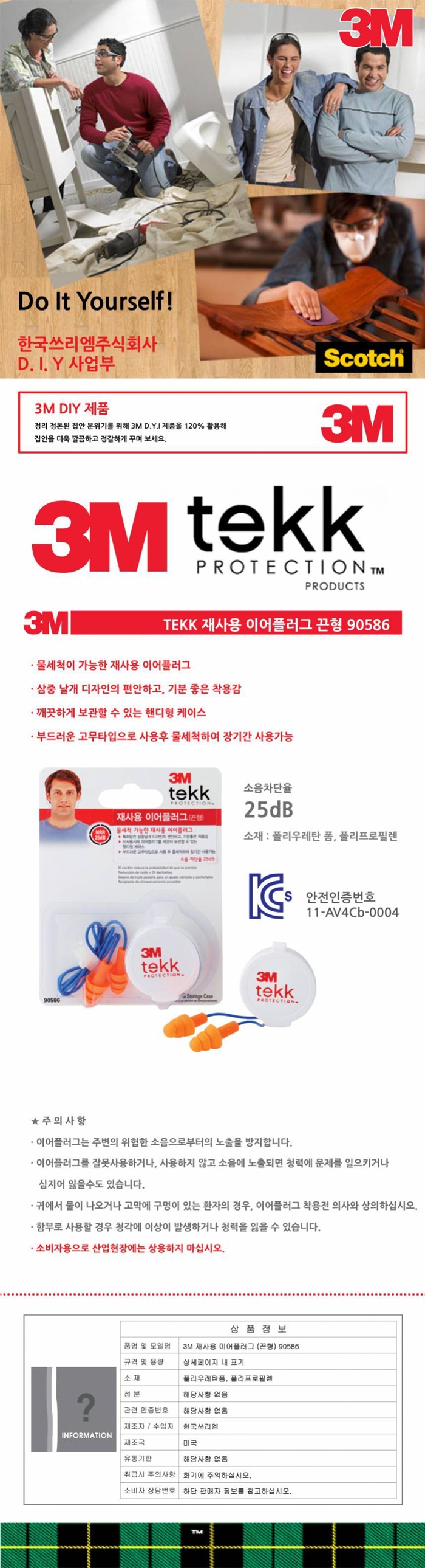 3M 재사용이어플러그(끈형)90586