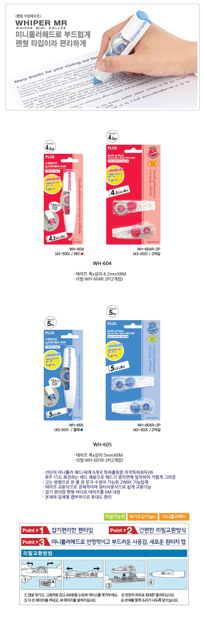 플러스수정테이프리필(2개) WH-605R/갑