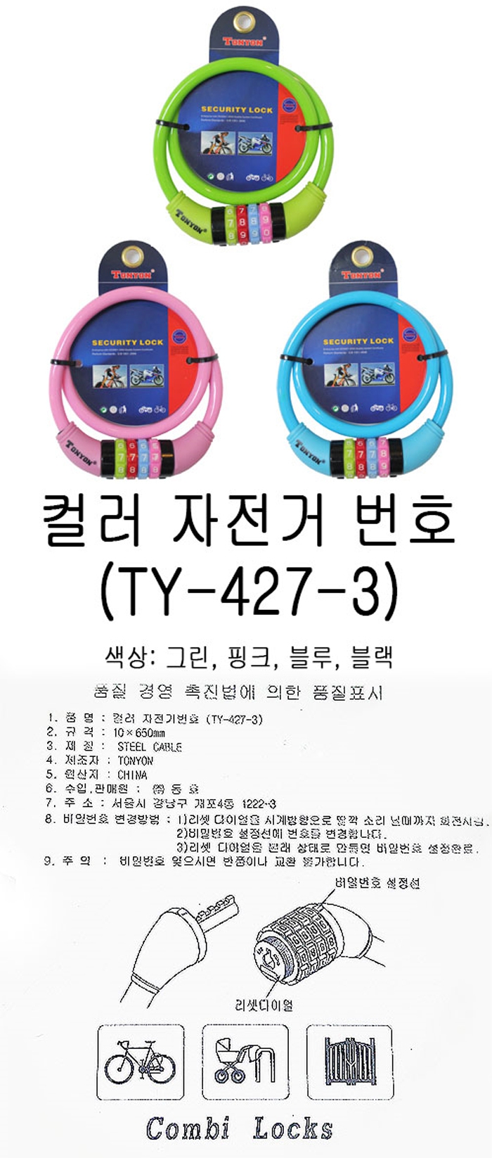 칼라자전거번호열쇠(핑크,연두,하늘)