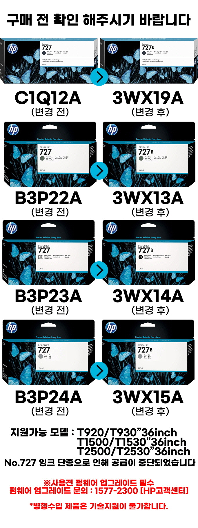 HP정품플로터잉크/ 727번B 3WX15A Gray (B3P24A 후속모델)