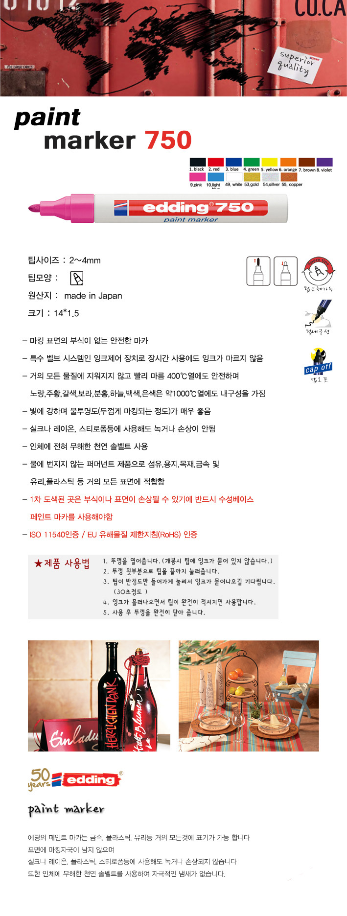 에딩750(노랑)2~4mm-1자루/페인트마카
