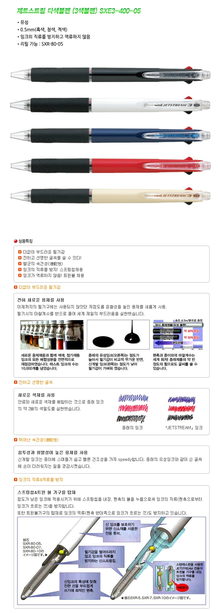 • 규격0.5mm, 3색(흑,청,적)볼펜,리필심SXR-80-05