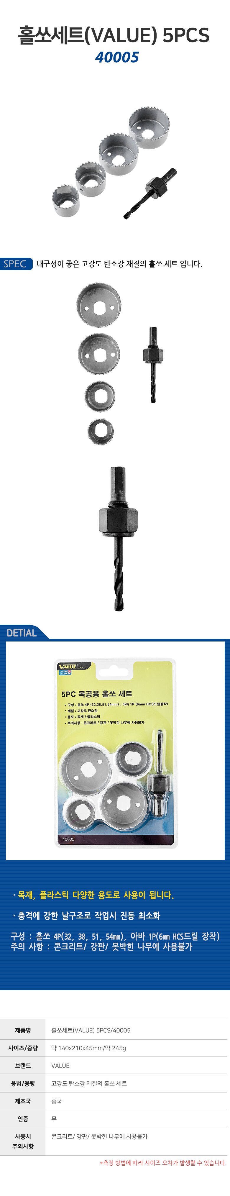목공용홀쏘세트5PCS 40005